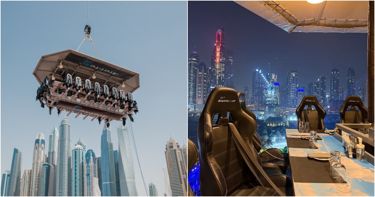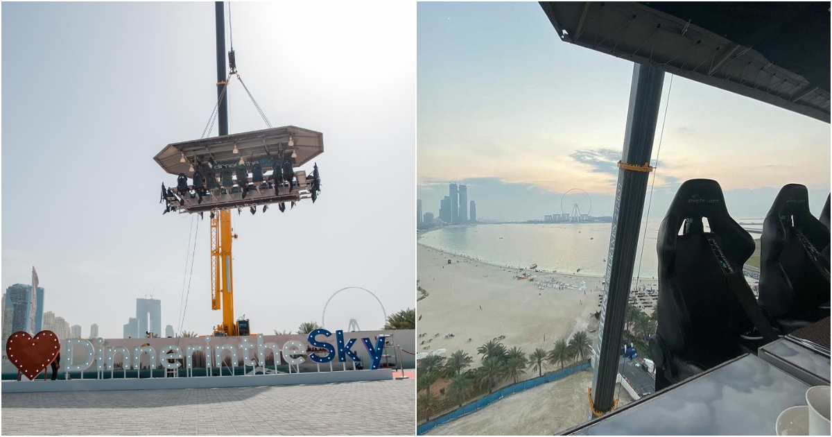 Dinner in the Sky Dubai rises approximately 45 to 50 meters above the ground, depending on weather conditions.